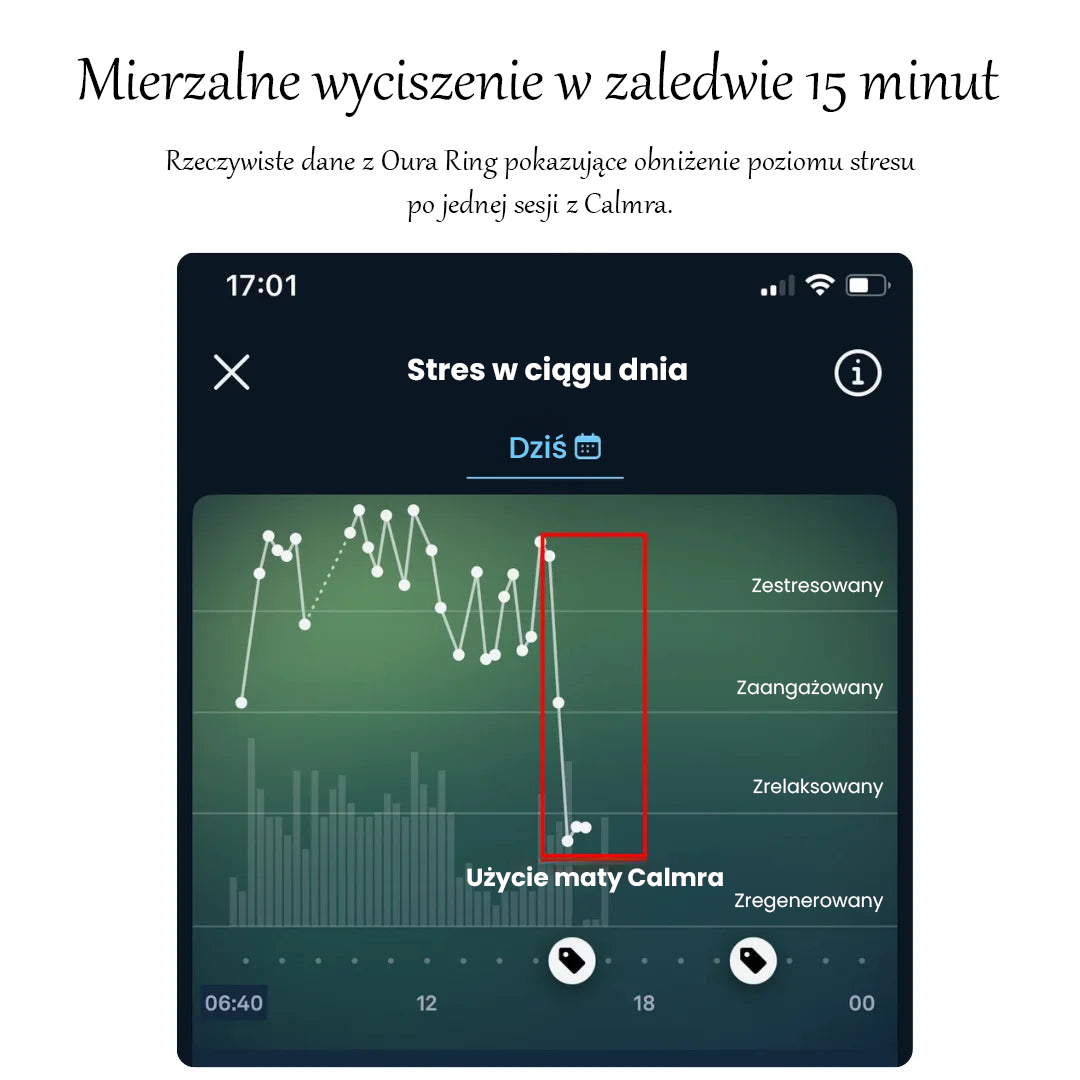 Regularne korzystanie z Maty Calmra może pomóc „uciszyć” gonitwę myśli, poprawić koncentrację i ułatwić radzenie sobie ze stresem oraz lękiem.